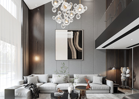现代风格是眼下的设计潮流,业主为房产公司高管,对美的东西,有一定鉴赏力。黑白灰色调是他们自己要求的,所以,我们在设计的时...