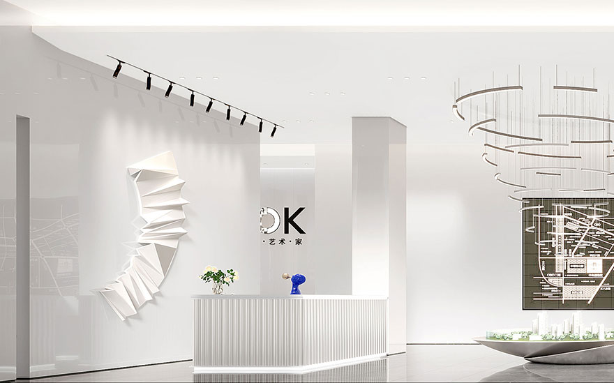 璟丽时尚中心有宁波国内知名时尚产业集团精心打造开发,售楼处以白色为主要色彩,用莫兰蒂色彩作为跳跃色,极简设计风格,讲究用材,质地考究,为时尚行业对售楼处理解和审美。